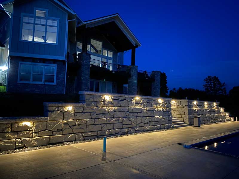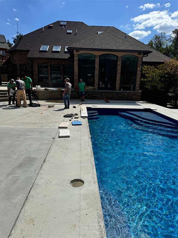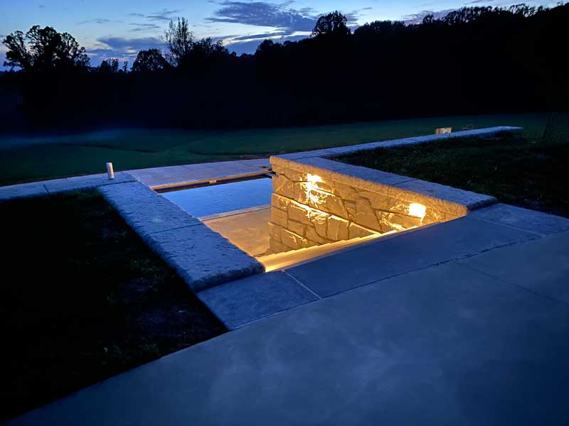 “We are overwhelming grateful and satisfied with our finished pool, pool deck, walls and lighting features. The pool area is beautiful, has quickly become the central hangout for friends and family. The Pool area is beautiful during the day, and when the sun sets, it comes to life, possibly looking even more beautiful due to the strategically placed lighting in and around the pool – we are grateful they recommended we add wall and pier lights!