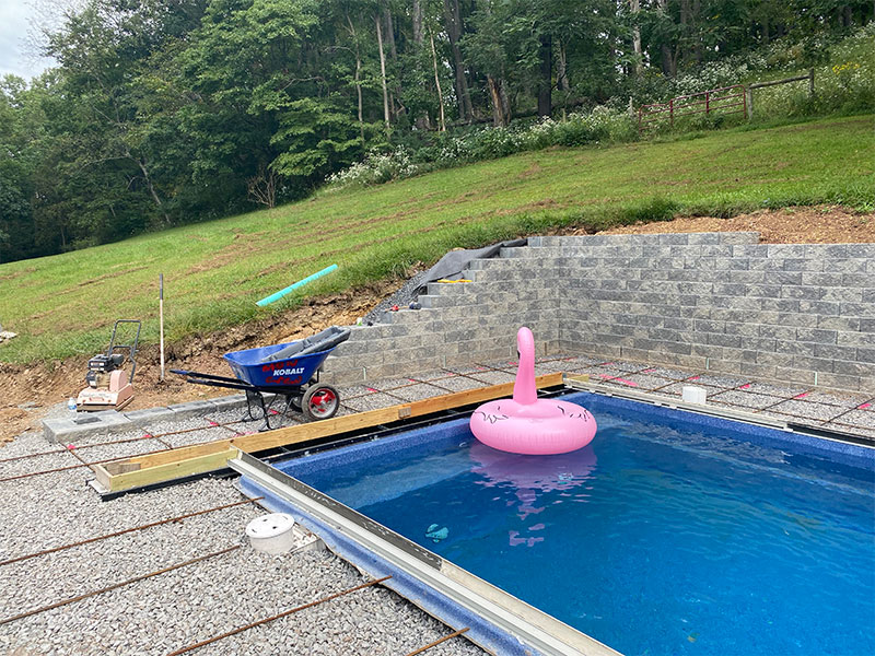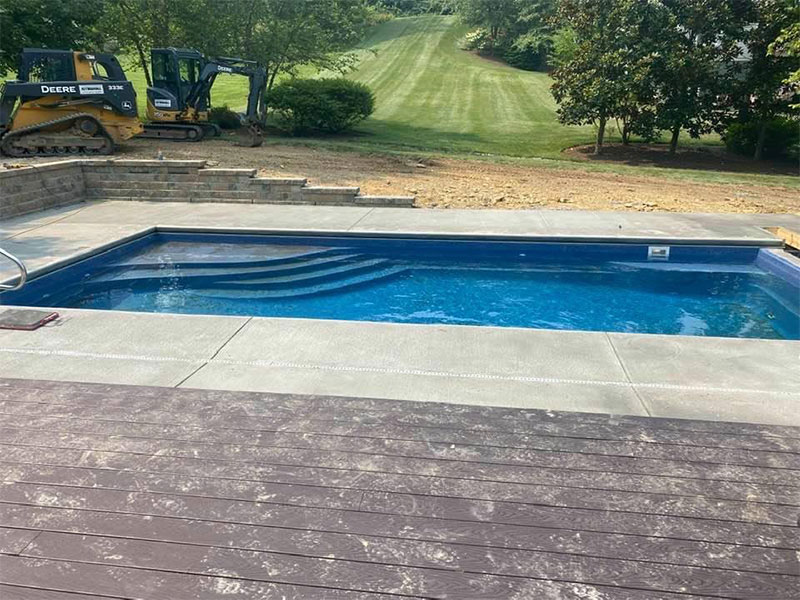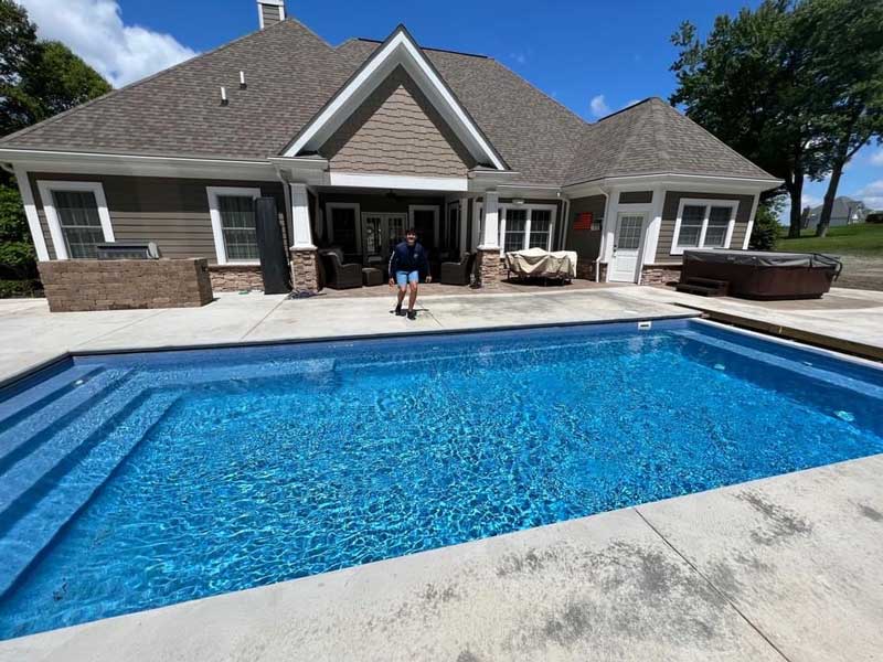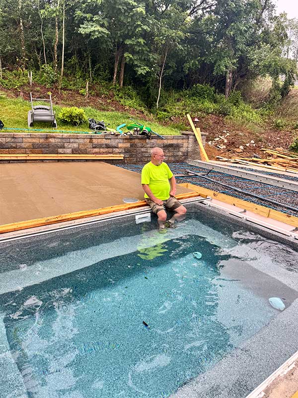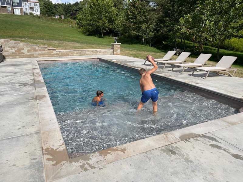 Specific to the Pool Type: “We love the design of our pool, the tanning ledge is the best! Tanning Ledge allows for slow entry, hanging out, small kids and animals can enjoy the pool safely – perfect for a chair and a good book in ankle deep water – feels like your sitting at the beach! The rest of the pool is still big enough for lots of swimming and playing, the 2 seats in the corners of the deep end allow for easy entry and exit, the courtesy ledge goes around the entire pool which is convenient and safe – it’s truly the perfect pool for us, we love it!”